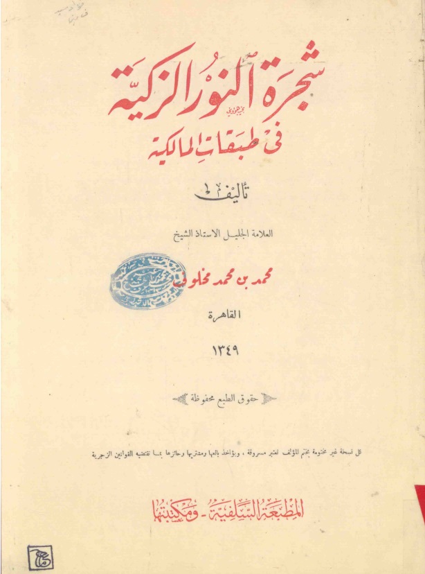 شجرة النور الزكية في طبقات المالكية لمحمد مخلوف : الكتاب